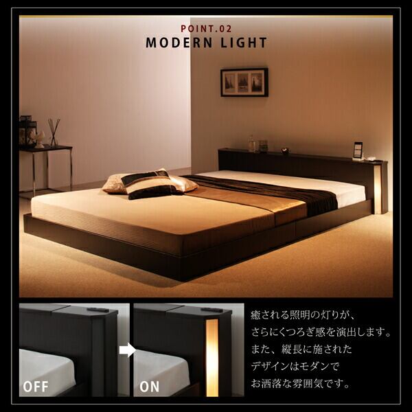 モダンライト・コンセント付きフロアベッド Shelly シェリー