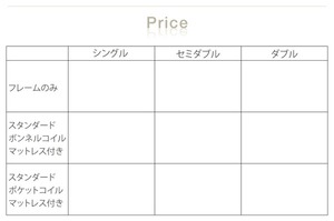 フレームのみはもちろん、マットレスも寝心地、品質に合わせて2種類から選べます。シングル・セミダブル・ダブルの3サイズ。